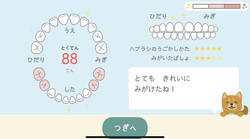 「画面への食いつきがものすごく良くて、ちゃんとみがけているのかいないのか、可視化されるので親としても本当、安心です。声がけしなくても、そろそろ寝る時間=歯みがきタイム! というのが習慣化されそうです。