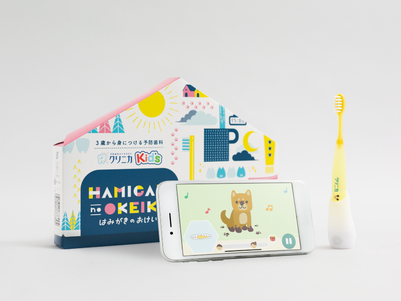ハブラシに取りつけるアタッチメント本体とスマートフォン上で使用するアプリで構成。専門家の指導のもと、子供が自主的に続けられるような工夫を取り入れ、「楽しさ」だけではなく「きちんとした歯みがき」を身につけることを実現。