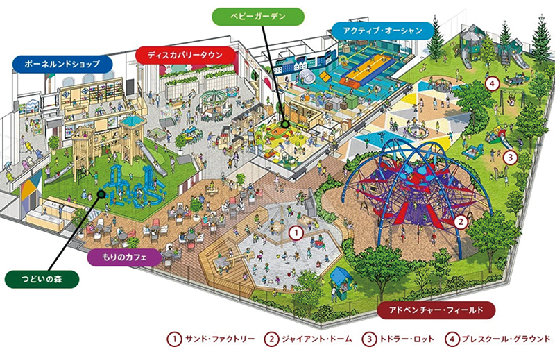 世界の教育玩具を販売するボーネルンドが、床面積1,930㎡の広々としたあそび場を「北海道ボールパークFビレッジ」内にオープン。屋内と屋外のあそび場にショップとカフェを併設し、気温や天候を気にせず1日中家族で楽しめる。