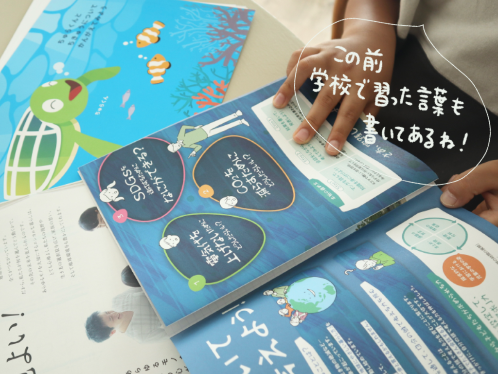 最近、子どもたちに環境問題について聞かれることがありました。昔よりも新しいワードも出ていて、親の私も説明することに不安を感じていたため、小学生の長男とワークに沿って会話をしながら書き込むことを考え合ったり、親子共に理解を深めることができて良かったです。