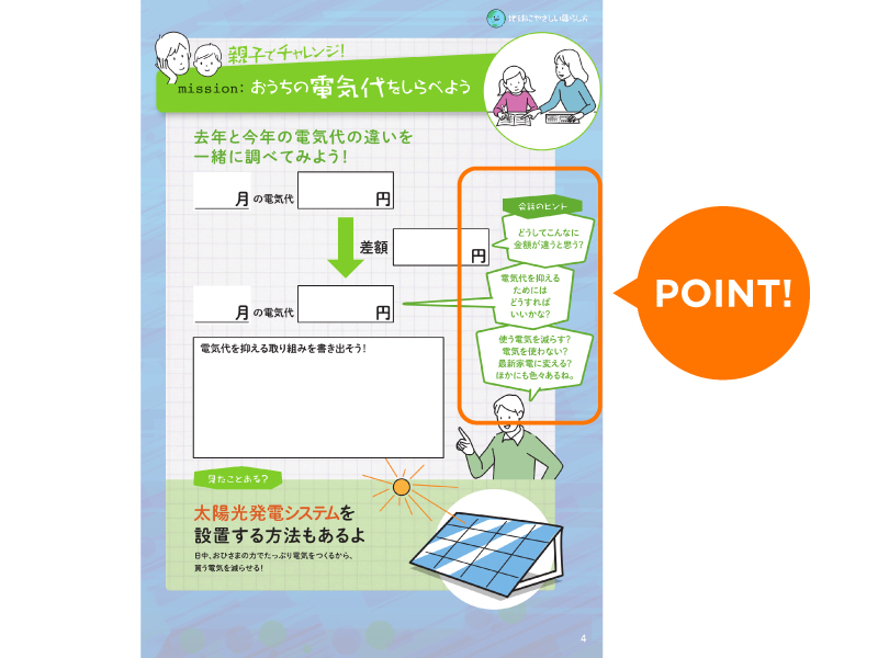 パパ・ママがどうして「ちゃんと電気を消そうね」「エアコンをつけっぱなしにしないで」と言うのか、という気づきにもつながるはずだ。