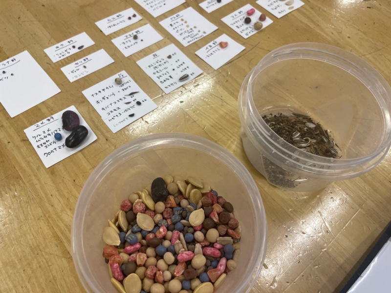 さらに福田さんが持参した植物の標本や種を観察し、どのように秋植えをすればよいか仮説を立てる作戦会議も行った。