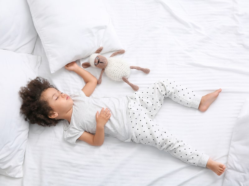 子どもは大人より体温調節機能や汗腺の発達が未熟です。同じ姿勢だと布団と接する面に熱が溜まりやすいため、寝がえりを打ったり身体をダイナミックに動かしたりすることで体温をコントロールしているだけなので、寝相が悪くても問題はありません。