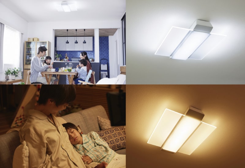 寝る前に明るい部屋にいると、なかなかお休みモードになれないもの。このライトは、スケジュールを設定すれば、朝は爽やかな明かり、夕方は温かみのある明かり、就寝前は明るさを抑え落ち着いた明かりにと自動で変化。シーンに適したBGMを流すこともでき、生活リズム改善をサポート。