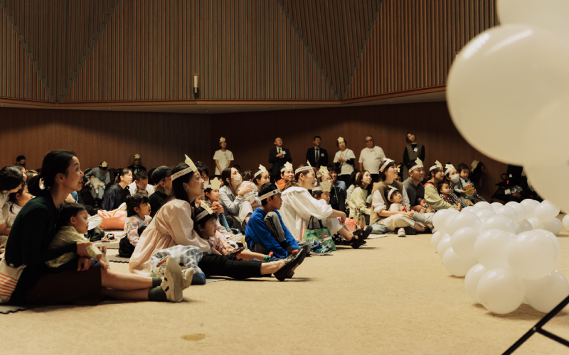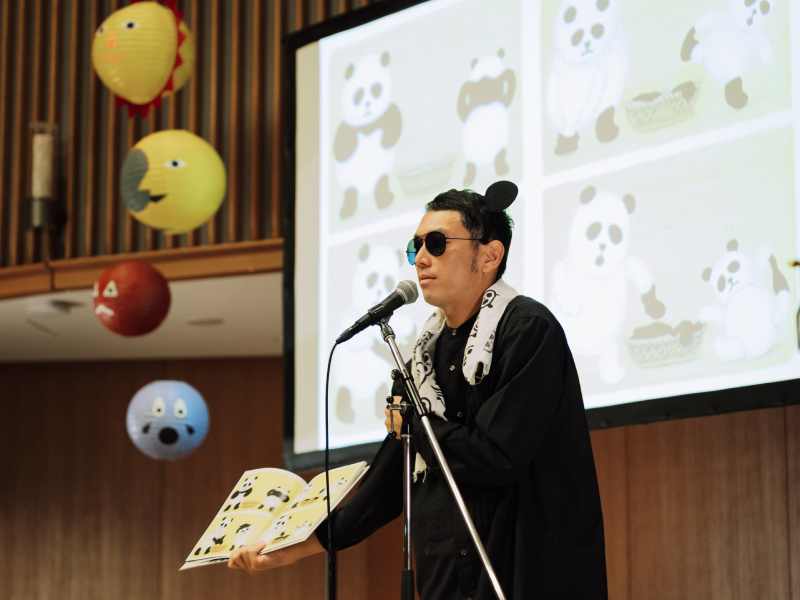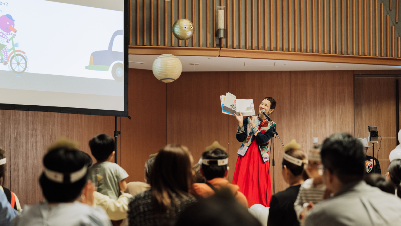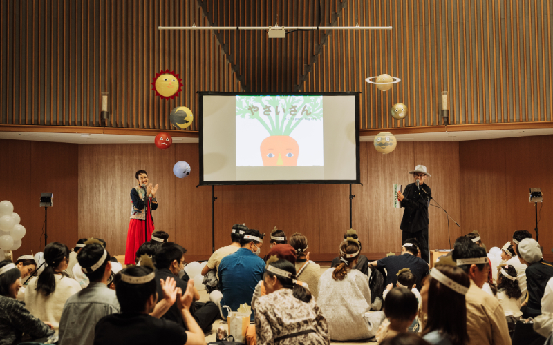 そんな天体モチーフが見守る1日限りのステージで、絵本ライブがスタートした。「やさいさん」ではみんなで掛け声を出しながら読み進め、「おばけだじょ」では怖くて泣き出す子どもたちもいた。
