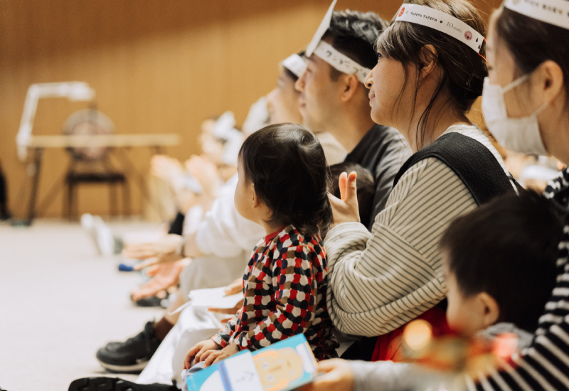 手拍子をしながら歌ったり、一緒に声を出して絵本を読んだり。子どもから大人まで、みんなが一体となって約1時間の絵本ライブをたのしんでいた。