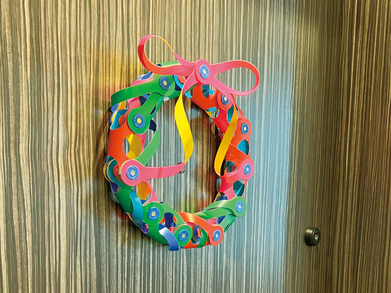 玄関のドアにマグネットでピタッ。クリックソーのリースでクリスマスを祝う。