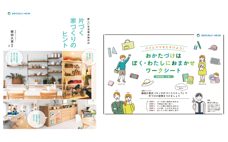 無料でダウンロードできるワークシートは、子どもと一緒にわかりやすく整理収納を学び、親子で実践できる内容になっている。対象年齢は5歳~。どちらも日本で初めて「収納」を分析し、「整理収納学」として整理収納の解決法を体系化した、収納カウンセラーの飯田久恵先生が監修している。