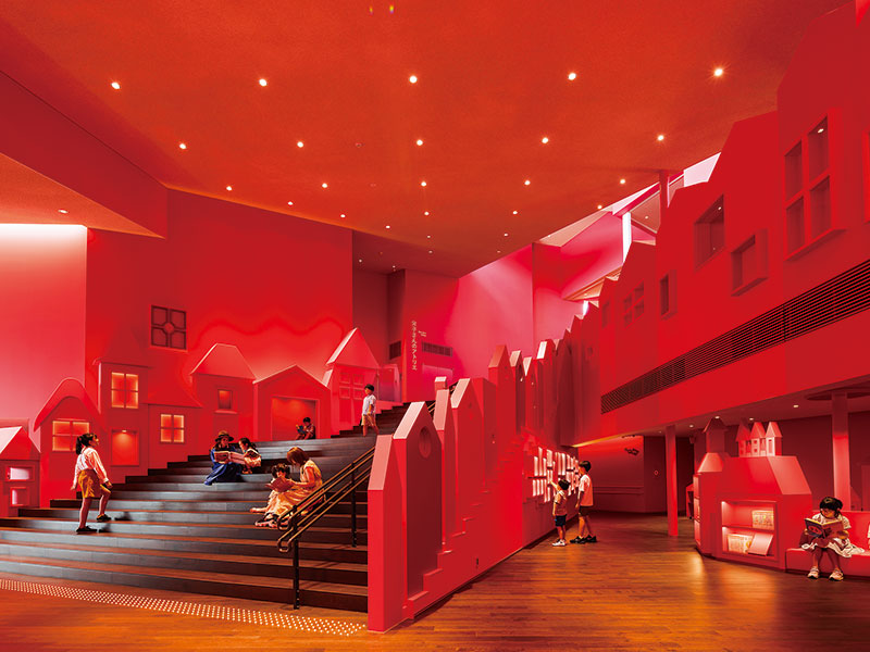 「いちご色の街を作りたかった」と角野さん。いちご色はこの文学館のテーマカラーに。