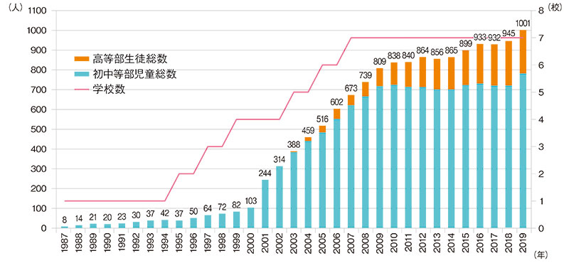 日本のシュタイナー学校数・生徒数推移