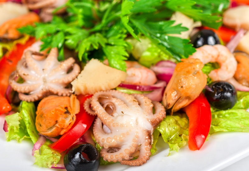 タウリンはイカ・タコ・牡蠣といった魚介類に多く含まれ、それらの食品を食べることでも摂取できる。