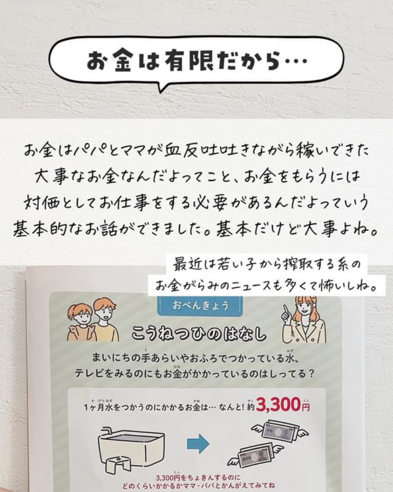 「お金をもらうには対価としてお仕事をする必要があるんだよ」といった基本的な話もでき、子どもたちがお金の価値について考えるきっかけになります。
