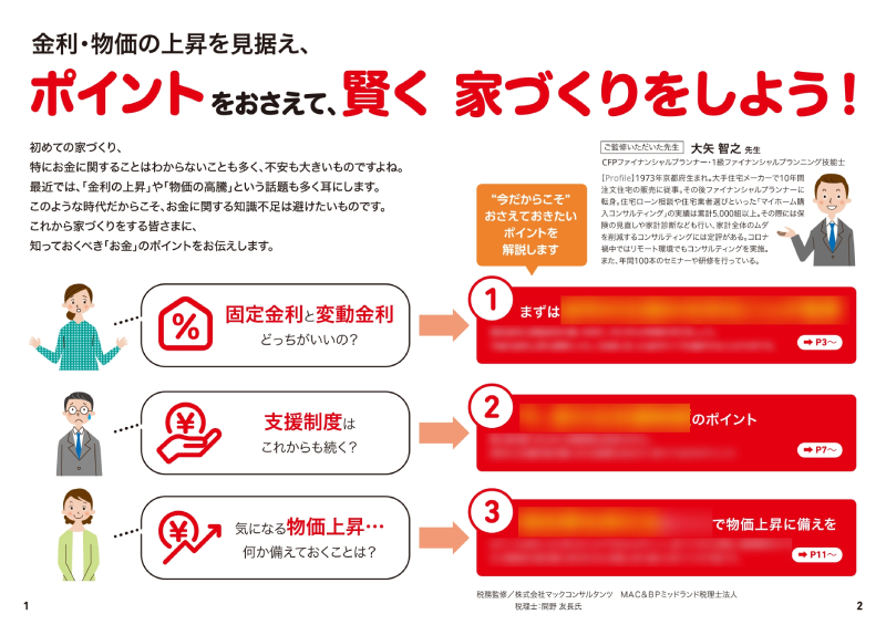 セットの大人向け冊子「家づくりの赤本」は、ファイナンシャルプランナー監修の本格的な知識が満載。金利の解説から支援金まで、これまで「お金の教育」を受けてこなかったパパ・ママも1から学ぶことができる。これから家づくりを考える人は必見だ。