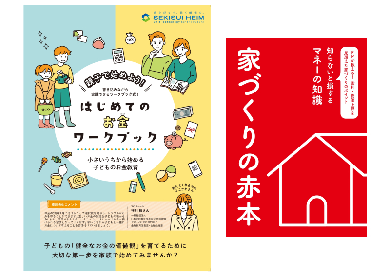 このワークブックはなんと無料で、セキスイハイムが提供する、家づくりにまつわるお金の知識を網羅した無料冊子「家づくりの赤本」とセットでもらうことができる。