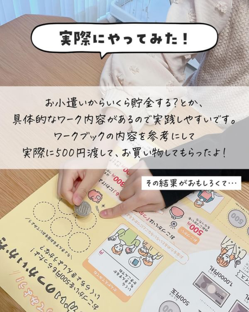 まるきさん:イラストがいっぱいで楽しく取り組めました。実際に500円を渡してお買い物体験をしてもらったら、おもしろいことに……!