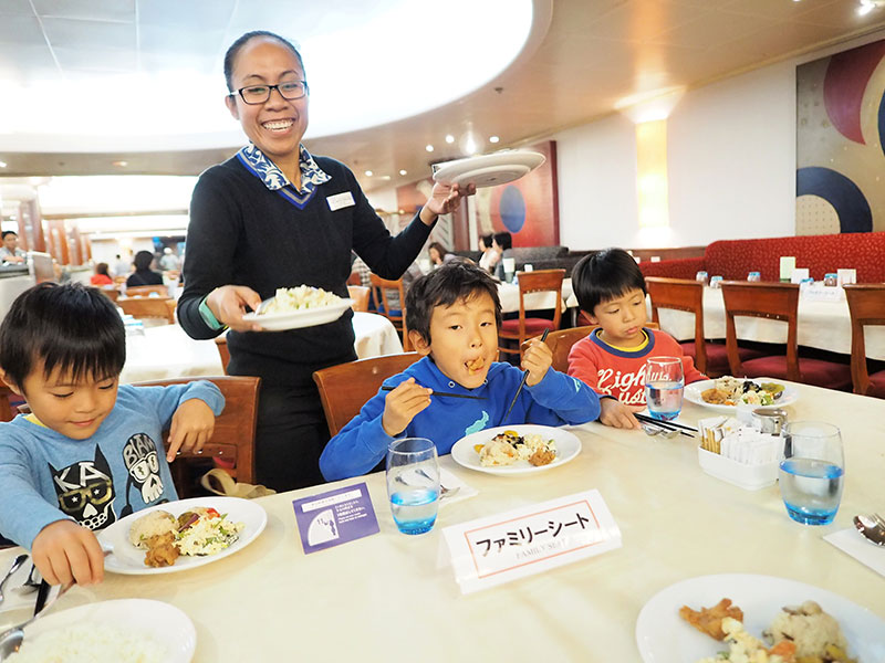 また、船の中はグローバルな空間で、乗客もクルーも国籍はさまざま。子どもたちもそんな周囲の人と助け合い、触れ合う中で、自然に「みんな違ってみんないい」価値観を実感していく。