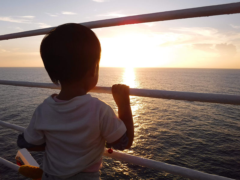 2歳の女の子が、見渡す限りに広がった水平線から朝日が昇り、夕方海に沈んでいくのを見て、「太陽がいなくなったら夜」という概念を覚えた。「太陽が昇ったら朝がきて、海に沈んだら夜になって寝るんだね」という言葉にお母さんは感動したそうだ。