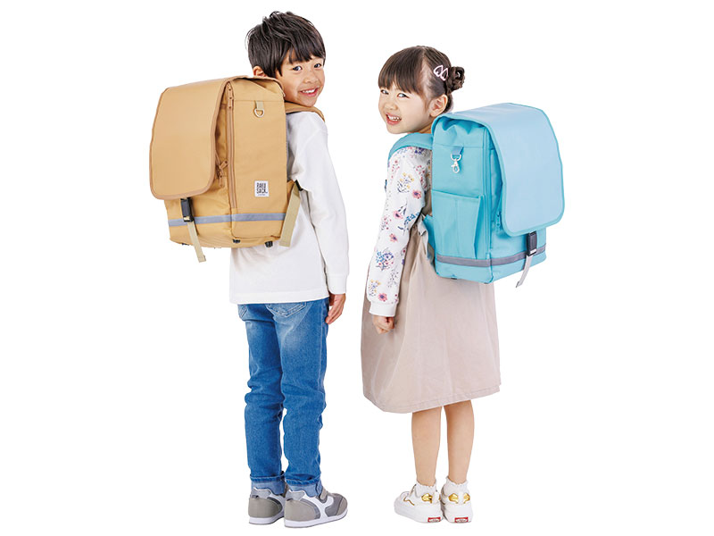 独自開発の『ブックストラップ』で重い教科書類を背中に密着させ、軽く感じる仕組みを搭載(特許取得)。肩ベルトと背面パッドは身長に合わせた3Dパターンで設計されており、成長に合わせて買い換えられる。95〜120cm向けの100サイズも登場し3サイズ展開に。