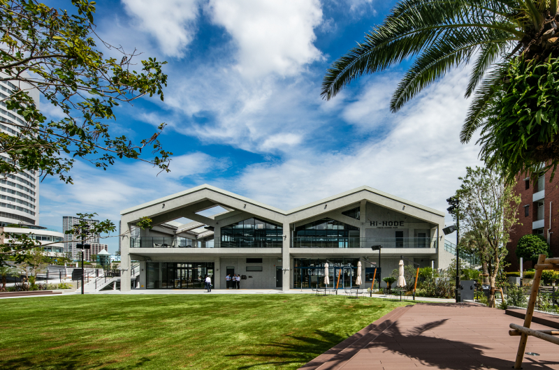 この日も、子どもたちは伸び伸びと芝生を駆け回ったり、2階のテラスから海を眺めたりと、Hi-NODEの明るい雰囲気を楽しみながら発表に臨んでいた。オシャレでありながら、子育てファミリーにもおすすめのお出かけスポットだ。