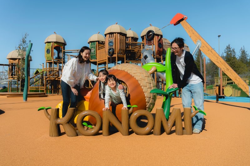 東京から約2時間、栃木県・茂木町にある「モビリティリゾートもてぎ」には、2024年3月に新オープンした「空のアスレチックひろば KONOMI」など、森の中のファミリーアスレチックをテーマにしたパークがある。