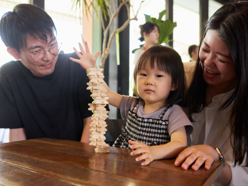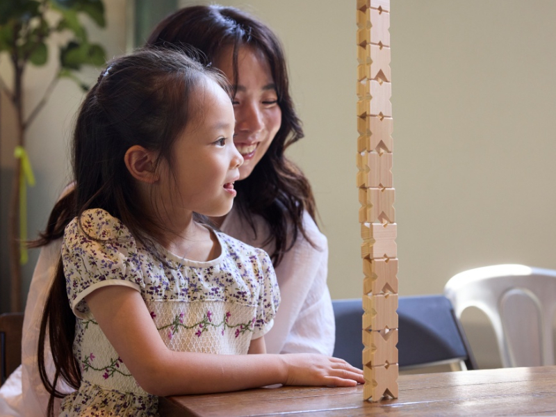 子どもたちが思いがけない形を組み立てていて、「こんなこともできるんだ!」とびっくりしました。大人も思わず積んでみたくなるデザインなので、親子で挑戦してみるのもいいですね!