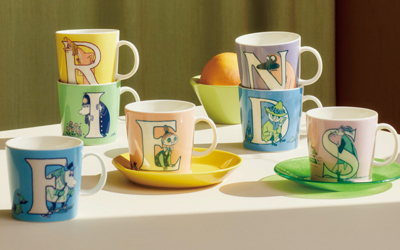 同企画では、賛同する企業や団体と展示やコンテンツ、アルファベット本などをリリース。中でも陶器ブランドのアラビアは「ムーミン アルファベットコレクション」で毎年数種類ずつ、アルファベットをあしらったマグカップを発表し続けることでファンを魅了している。