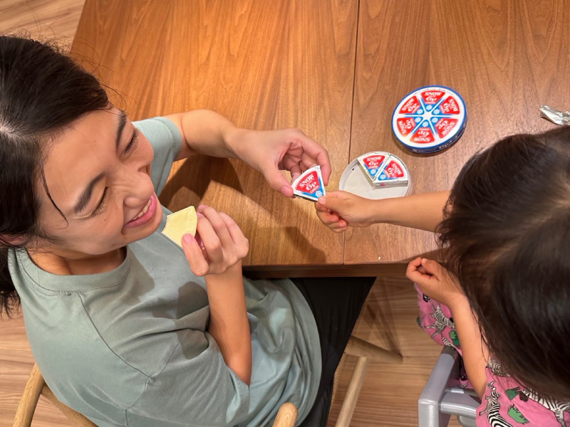 例えば、子どもが好きな『6Pチーズ』を家族に配ってもらうという役割。配り終えたらすぐに食べられるのも嬉しい。