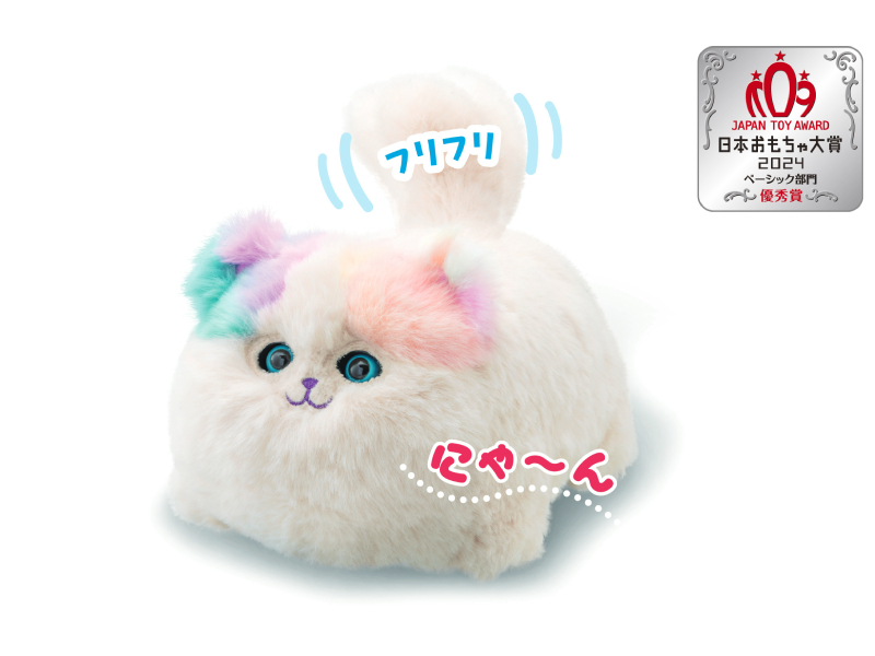 個体ごとに耳の色が異なる愛着が湧くデザインや、しゃべりかけると人間の言葉を真似をする機能が愛らしい。ごっこ遊びやぬいぐるみなどの五感を育む基礎的な玩具が選ばれる「日本おもちゃ大賞2024」ベーシック部門で優秀賞を受賞。