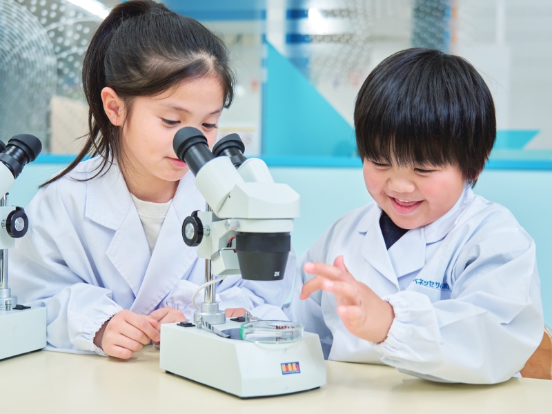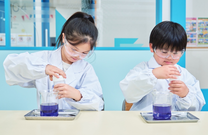 約20年の実績を持つサイエンス教室。年中~小6の学年に合わせ、自然科学から応用科学までさまざまな分野の実験を通して、「自ら考える力」を伸ばす。子ども4~6人にサポートの先生1人の少人数グループで、自由な発想を楽しく引き出してくれるのも特徴。