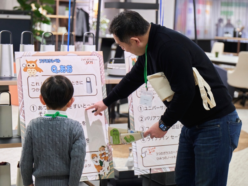 謎は、椅子や机など身近にある家具の便利な機能やマメ知識、SDGsに触れたものなど、知っていると自慢できることばかり。名探偵さながら、「謎が解けた!」「ここにヒントが隠れていたよ!」と笑顔で会話する子どもたちの楽しそうな姿に、ショールーム内が明るい雰囲気に包まれた。