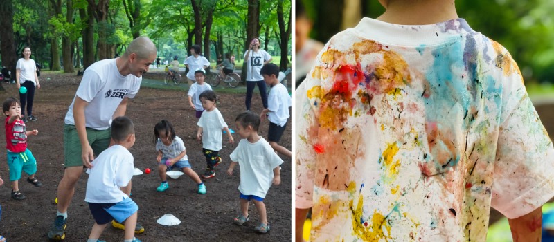 ③全員白Tシャツを着て、お互いに追いかけっこをしながらカラーボールをシャツに投げ合う