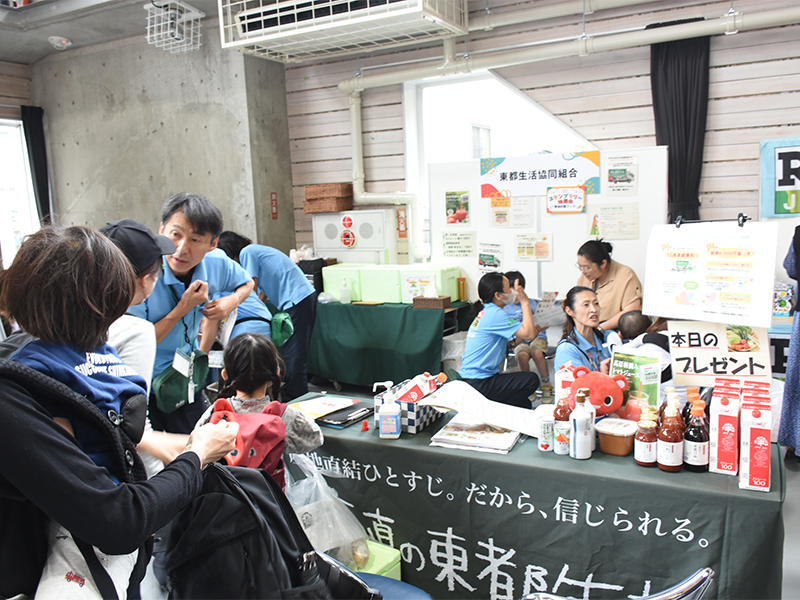 生協が宅配している、安心・安全な食材の試飲・試食を提供。カラメル色素不使用のプリンやジュースが大好評。