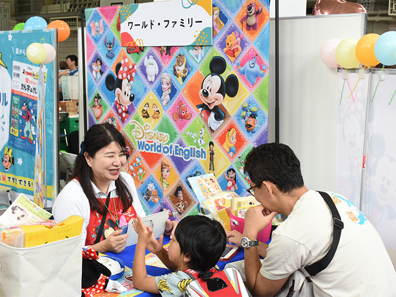 ディズニーキャラクターと触れ合いながら英語に親しめる教材を体験。アンケート回答でサンプルセットの特典も。