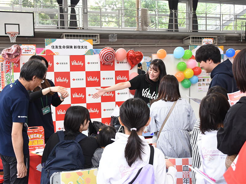 太陽光発電、蓄電池、ウォーターサーバーなど最新アイテムを多数展示。お菓子やバルーンアートのプレゼントも。