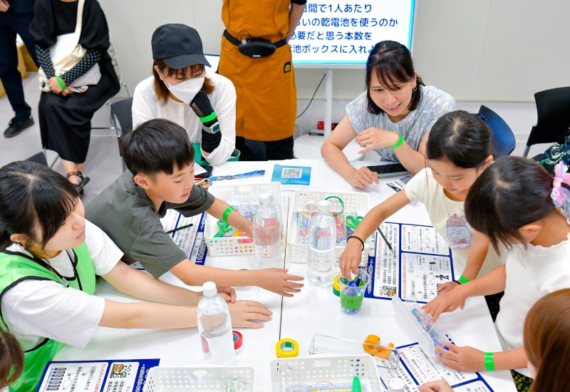 ワークショップ後半では、低学年がペットボトルランタンを、高学年が懐中電灯を制作。本テーマは、工作を楽しみながら、電池の役割や防災の大切さを学ぶ機会となるはずだ。