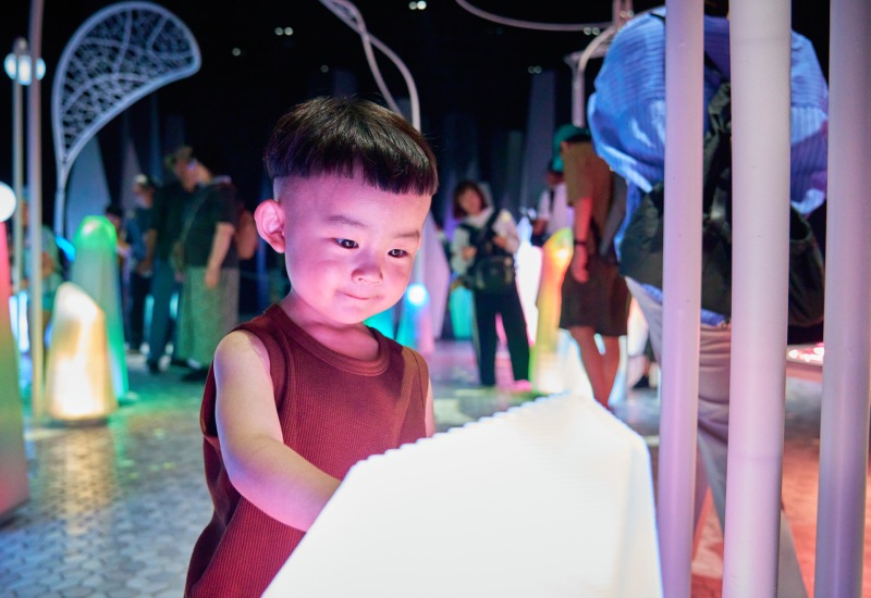 360°全方位から五感を刺激し、行動・表情を分析する最新技術による展示体験は、1人ひとり異なる“モノの捉え方=ココロ”を多彩に映し出す。子どもたちはさまざまなココロと出会いながら、自分の感じ方の魅力に気づき、より自由に想像を広げていくきっかけとなる「Unlock体験」ができるのだ。