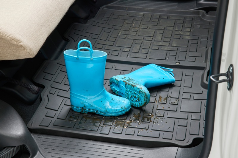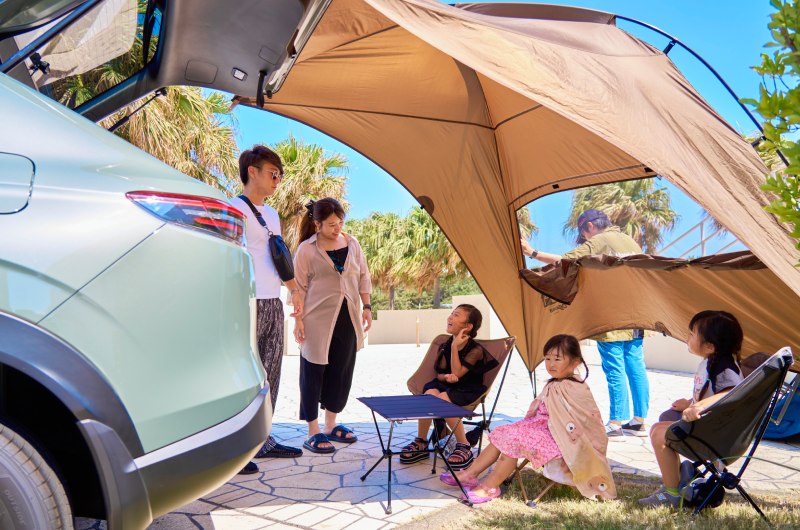 海で遊んだ後の子どもはびしょ濡れで砂だらけ。車内の汚れも気になるが、水汚れに強い樹脂製の「オールシーズンマット」を敷いておけば、帰宅後のお手入れもカンタンだ。「雨の日のお出かけでも安心ですね」と子育て世代ならではの視点で、パパ・ママの注目を集めていた。