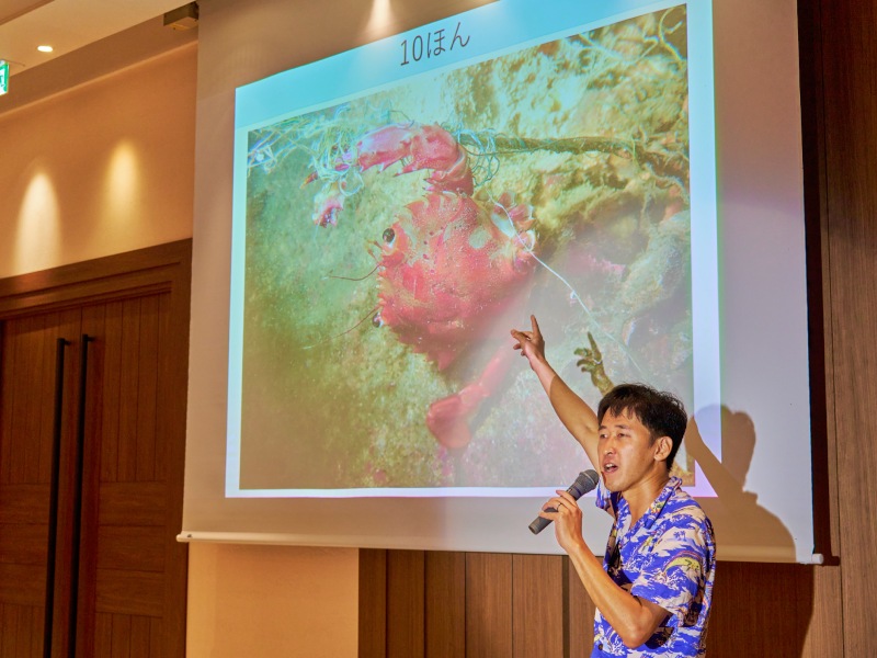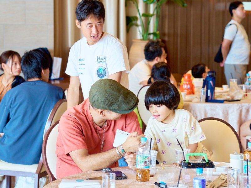 Marine Sweeperの土井さんは、全国の海中清掃事業を手掛けるフィッシングダイバーだ。海の環境保全についても積極的に取り組んでおり、会場ではスライドを展開しながら海の生き物やゴミ問題についてわかりやすく解説。この後に予定されている磯遊びにワクワクする子どもたちを前に、海で過ごす注意点も丁寧に説明してくれた。