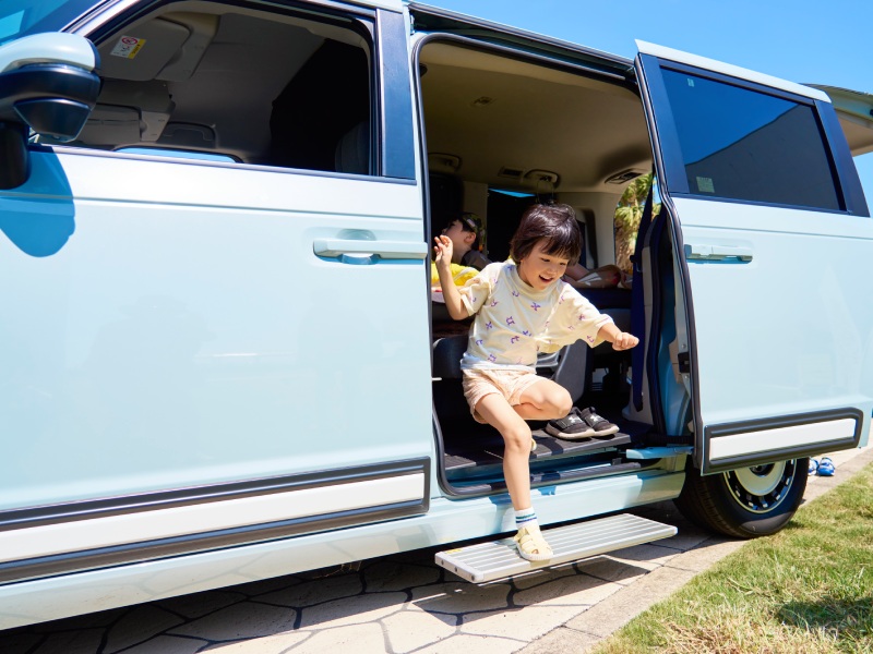アウトドア用品もまとめて積み込めるミニバンは、荷物が増えがちな子育て世代の定番カー。どのメーカーでも低床化を進めてはいるが、小さな子どもにとっては降車が怖い時もある。スライドドアと連動する「オートサイドステップ」があれば、1人でスムーズに乗り降りできて、パパ・ママも大助かりだ。