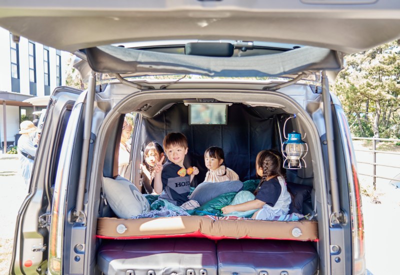 ランチ終了後は、ホンダアクセスの純正アクセサリーでアウトドア仕様になったHonda車も体験。車中泊もできる車内は秘密基地のような雰囲気で、磯遊びで疲れていたはずの子どもたちも大喜び。