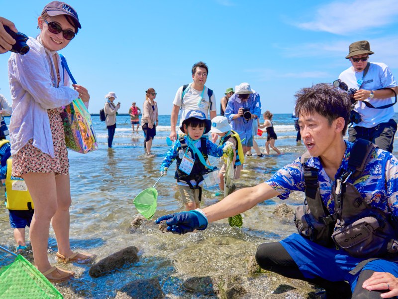 今回は、自然に対する気づきや自然体験に対する興味・楽しみを子どもに持ってもらいたいと、「さかなのおにいさん かわちゃん」と、Marine Sweeperの土井佑太さんをガイドとして招待。