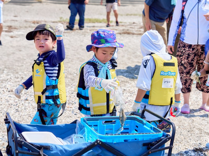「ごみを拾ったら青いカートに入れてね」とあらかじめ声をかけられていた子どもたちは、生き物を探すのと同じぐらい熱心にゴミを拾い集めていた。海に捨てられたゴミの多さに気づいたことが、今後自然環境について考えるきっかけにつながっていくだろう。