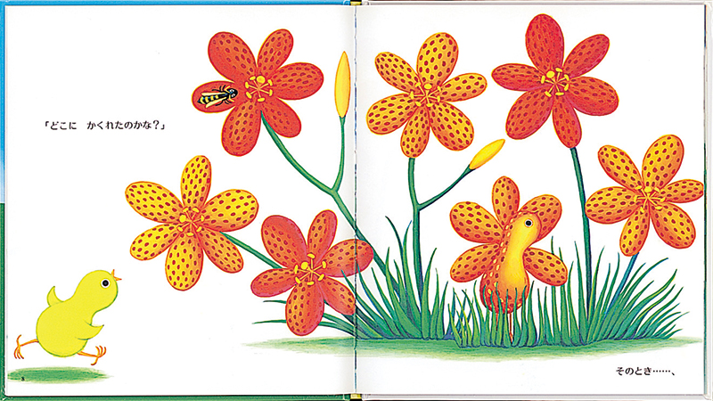 さて、ひよこちゃんは見つけることができるでしょうか? 身体の色や形を生かした2匹のかくれんぼに、読者も一緒になって参加できる一冊です。