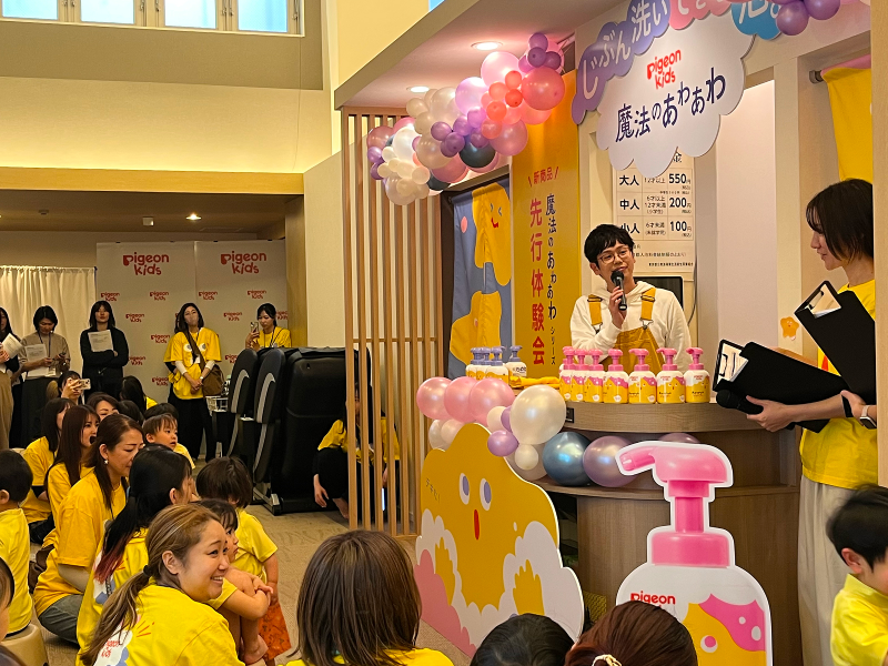 発売に先立ち、2月5日に新商品の先行体験会『ピジョンキッズ 新商品「魔法のあわあわ」シリーズ先行体験会』が開かれた。銭湯を貸し切って行われた本イベントには一般の親子27組が集まり、大いなる盛り上がりを見せた。