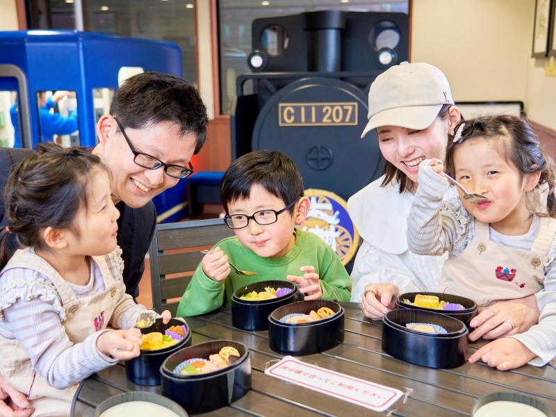 「ポッポーーー!!」と大きく響く汽笛の音、シュッシュッと吹き出される煙、石炭の燃える香りといった五感への刺激や、地域の人との温かい交流などは、日常を離れ、楽しい思い出を作ることはもちろん、子どもの“非認知能力”を高める体験にもなると言われている。